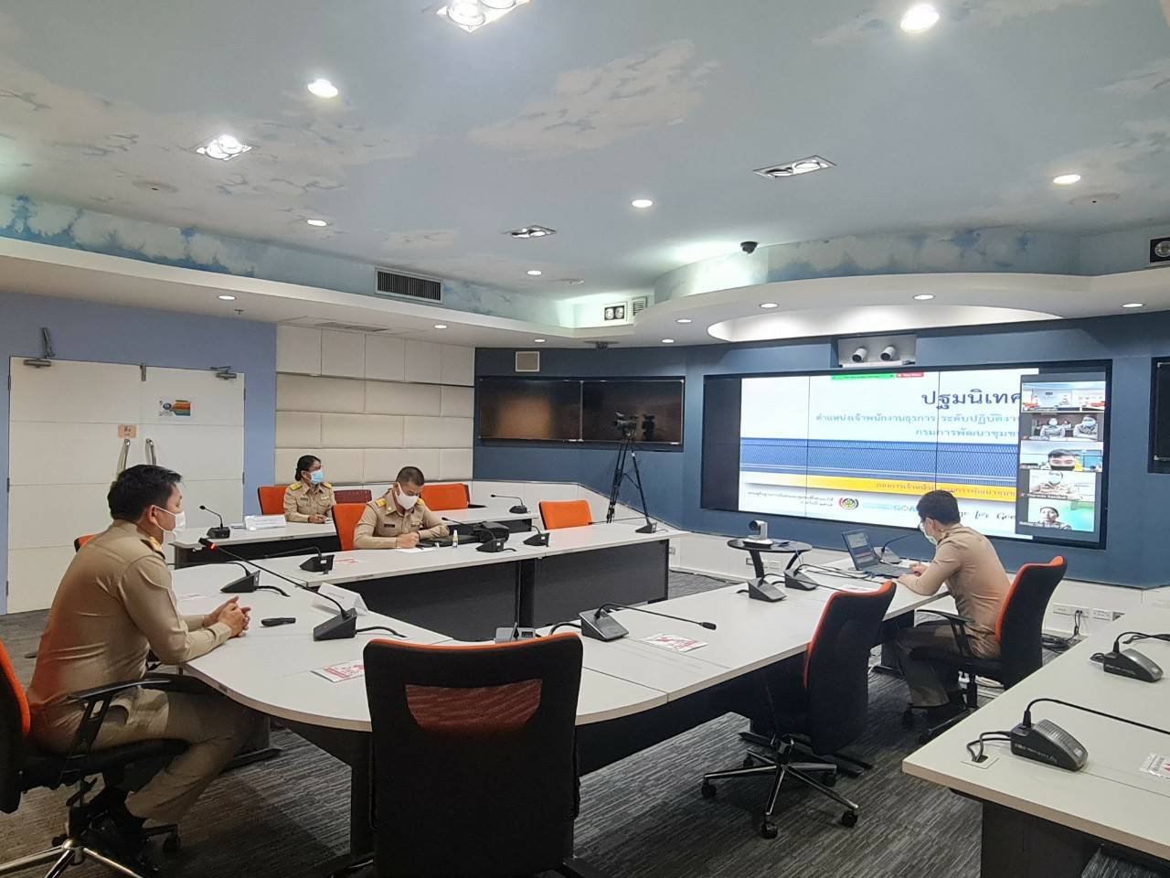นายสุทธิพงษ์ จุลเจริญ อธิบดีกรมการพัฒนาชุมชน มอบหมายให้ นายนพรัตน์ ธำรงทรัพย์ ผู้อำนวยการกองการเจ้าหน้าที่ เป็นประธานการปฐมนิเทศข้าราชการที่อยู่ระหว่างการทดลองปฏิบัติหน้าที่ราชการ ตำแหน่งเจ้าพนักงานธุรการปฏิบัติงานโดยการประชุมผ่านระบบวีดิทัศน์ทางไกล (Video Conference ) ด้วยโปรแกรม ZOOM Cloud Meeting โดยมี ผู้อำนวยการวิทยาลัยการพัฒนาชุมชน ผู้อำนวยการกลุ่มงานต่างๆ ร่วมชี้แจงสร้างความเข้าใจในการปฏิบัติราชการ พร้อมด้วย เจ้าหน้าที่กองการเจ้าหน้าที่ และข้าราชการที่อยู่ระหว่างการทดลองปฏิบัติหน้าที่ราชการ จำนวน 6 ราย ณ ห้องศูนย์ข้อมูลกลางเพื่อการตัดสินใจ (WAR ROOM) ชั้น 5 กรมการพัฒนาชุมชน