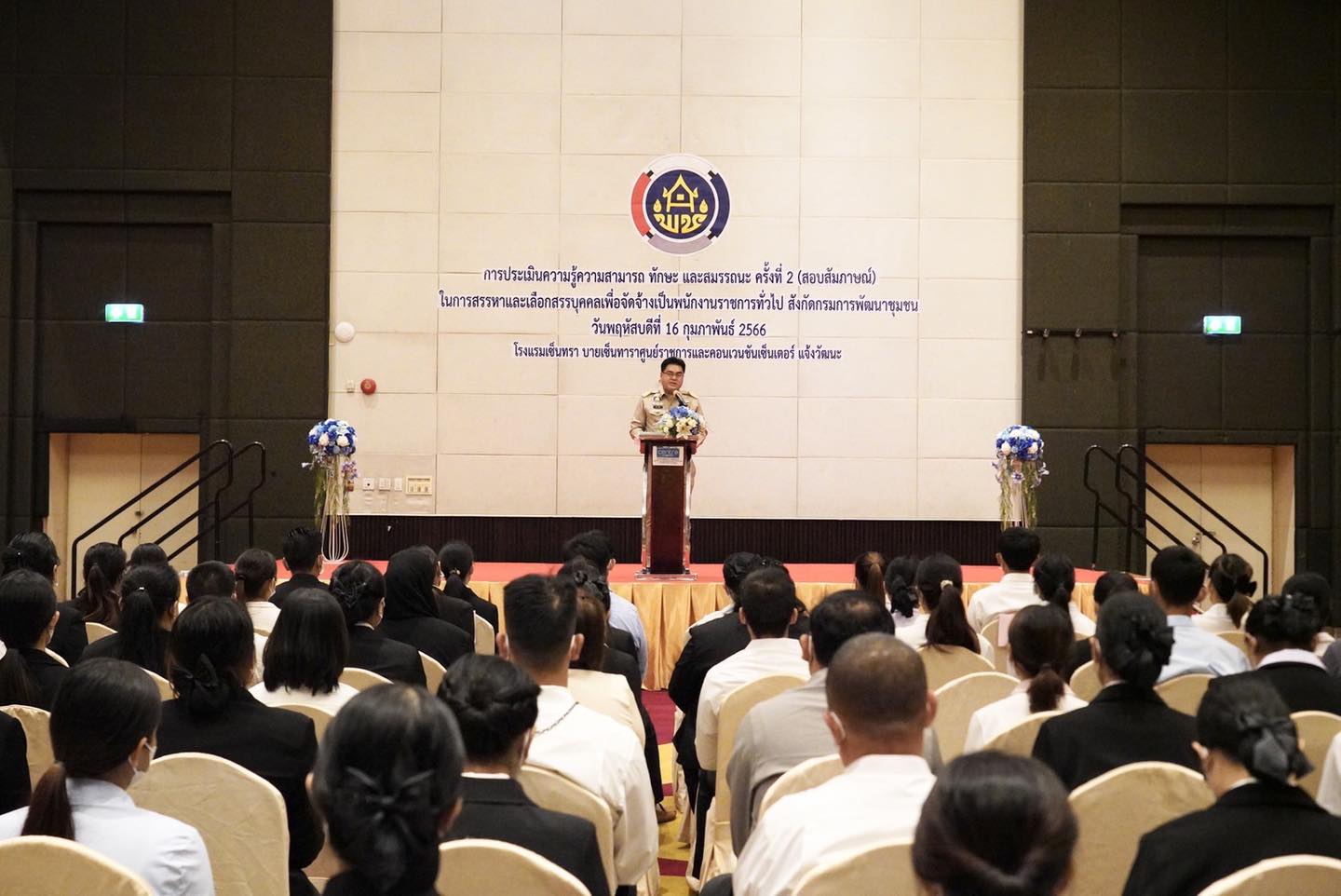นายอรรษิษฐ์ สัมพันธรัตน์ อธิบดีกรมการพัฒนาชุมชน กระทรวงมหาดไทย มอบหมายให้นายชูชีพ พงษ์ไชย รองอธิบดีกรมการพัฒนาชุมชน เป็นประธานการประเมินความรู้ความสามารถ ทักษะ และสมรรถนะ ครั้งที่ 2 (สอบสัมภาษณ์) ในการสรรหาและเลือกสรรบุคคลเพื่อจัดจ้างเป็นพนักงานราชการทั่วไป สังกัดกรมการพัฒนาชุมชน จำนวน 7 ตำแหน่ง ได้แก่ 1)นักทรัพยากรบุคคล 2)นักส่งเสริมการพัฒนาชุมชน 3)นักวิเคราะห์นโยบายและแผน 4)นักประชาสัมพันธ์ 5)นักวิชาการพัสดุ 6)วิศวกรโยธา และ 7)นายช่างไฟฟ้า โดยมี นายเกียรติปราโมทย์ ฉายศรี ผู้อำนวยการกองการเจ้าหน้าที่ พร้อมด้วยคณะกรรมการสอบสัมภาษณ์ และคณะทำงานกองการเจ้าหน้าที่ เข้าร่วมฯ นายชูชีพ พงษ์ไชย รองอธิบดีพช. กล่าวว่า ในปีงบประมาณ พ.ศ. 2566 กรมการพัฒนาชุมชน ได้มีทิศทางการขับเคลื่อนงานพัฒนาชุมชนตามวิสัยทัศน์กรมการพัฒนาชุมชน “เศรษฐกิจฐานรากมั่นคง ชุมชนเข้มแข็งอย่างยั่งยืน ด้วยหลักปรัชญาของเศรษฐกิจพอเพียง” เพื่อมุ่งสู่ชุมชนเข้มแข็ง (ตำบลเข้มแข็ง) “มั่นคง มั่งคั่ง ยั่งยืน” ให้ชุมชนพึ่งตนเองได้ มีเศรษฐกิจฐานราก และมีความสุขมวลรวม ผ่านโครงการต่างๆ ของกรมฯ ในการเสริมสร้างความเข้มแข็งของชุมชนให้สามารถบริหารจัดการและพึ่งตนเองได้อย่างยั่งยืน ส่งเสริมและยกระดับเศรษฐกิจฐานรากให้มั่นคง การสร้างความร่วมมือและส่งเสริมบทบาทเครือข่ายการพัฒนาชุมชนทั้งในและต่างประเทศ และการพัฒนาองค์กรให้ทันสมัย มีสมรรถนะสูง รวมถึงมีธรรมาภิบาล บุคลากรมีอุดมการณ์และเชี่ยวชาญในงานพัฒนาชุมชน และมุ่งมั่นว่าเราจะได้บุคลากรที่มีศักยภาพอย่างเต็มที่มาช่วยเหลือพี่น้องประชาชน โดยขอให้คณะกรรมการสอบทุกท่าน ปฏิบัติหน้าที่ครั้งนี้อย่างเต็มที่ โดยคณะกรรมการสอบทุกท่านมีประสบการณ์ที่จะค้นหาความเหมาะสมต่อการปฏิบัติหน้าที่ทั้ง 7 ตำแหน่งนี้ได้อย่างมีประสิทธิภาพตามเกณฑ์การประเมิน และให้ดึงศักยภาพของผู้เข้าสัมภาษณ์ ทั้งความรู้ความสามารถ การแสดงออกถึงทัศนคติ mindset และการปรับตัว เพื่อเป็นประโยชน์ต่อการทำงาน ให้บรรลุผลสำเร็จตามเกณฑ์ที่ได้วางไว้อย่างเคร่งครัด พร้อมพบปะให้กำลังใจแก่ผู้เข้ารับการสัมภาษณ์ โดยขอให้ทุกท่านมีสมาธิในการตอบคำถาม และเชื่อว่าหลายท่านมีทักษะ ประสบการณ์ที่ผ่านมาให้นำเสนอแก่คณะกรรมการฯ อย่างเต็มที่ ถือโอกาสครั้งนี้ เชื่อว่าทุกท่านจะดำเนินการตาม motto ของกรมฯที่ว่า “เราทุกคนทำได้” ได้อย่างเเน่นอน ด้านนายเกียรติปราโมทย์ ฉายศรี ผู้อำนวยการกองการเจ้าหน้าที่ ดำเนินการประชุมคณะกรรมการสอบสัมภาษณ์คณะต่างๆ จา