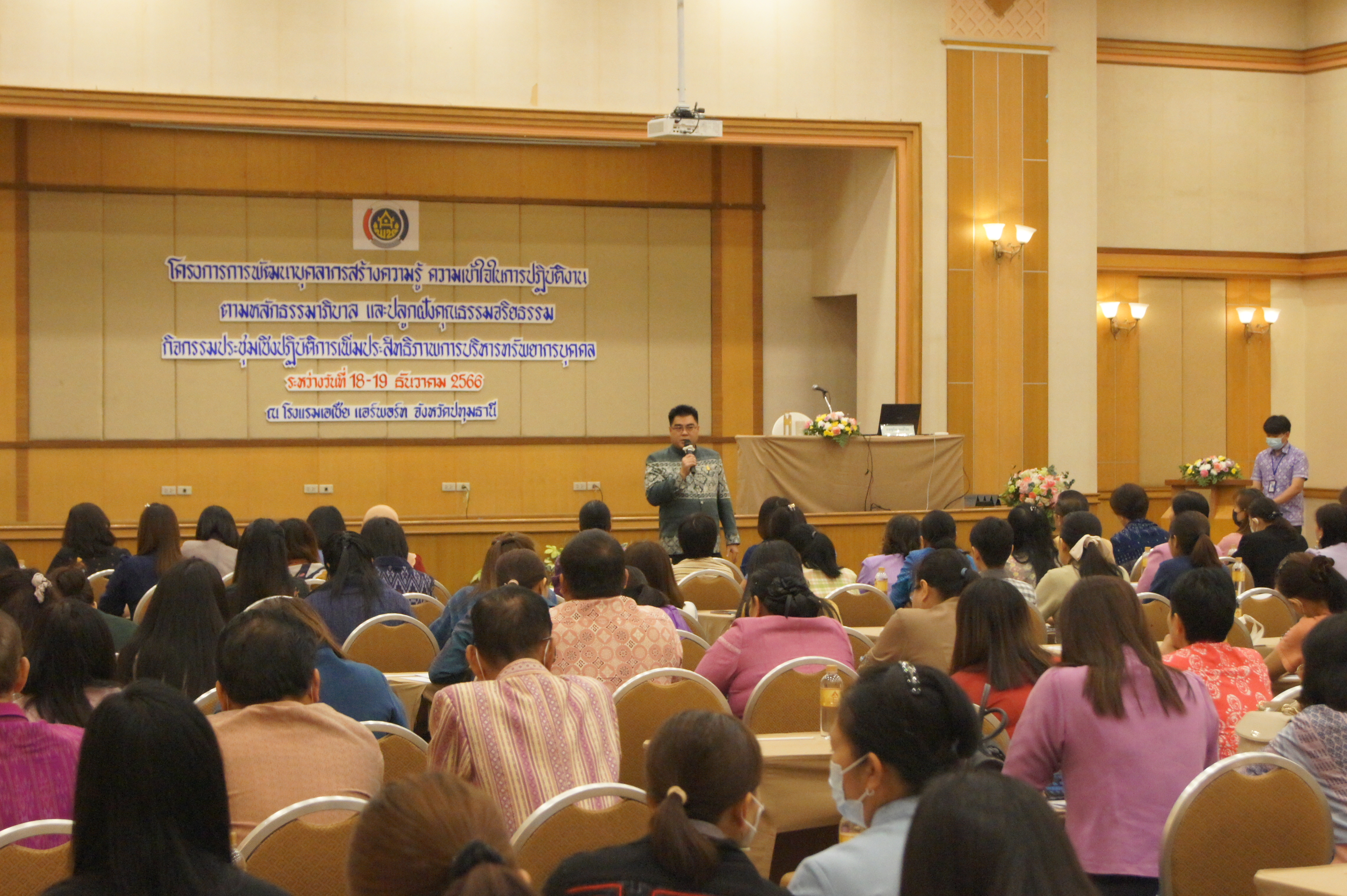 สำหรับในวันแรกของการประชุมฯ (18 ธันวาคม 2566) กลุ่มเป้าหมายเข้าร่วมประชุมฯได้รับฟังการบรรยายและเรียนรู้ในหัวข้อ “แนวทางการแต่งตั้งข้าราชการ” โดย นายไชยา พิมพ์สิงห์ ผู้อำนวยการกลุ่มงานบรรจุแต่งตั้ง